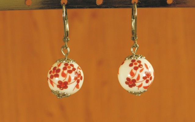 Náušnice - porcelánový korálik, chir. oceľ uzavreté zapínanie